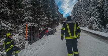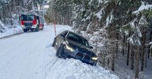 Nachdem wir bereits zur Mittagszeit auf der BergstraĂe gefordert waren, erreichte uns am spĂ€ten Nachmittag der nĂ€chste Alarm. Ein Mietwagen war auf der winterlichen MautstraĂe in eine gefĂ€hrliche SchrĂ€glage geraten und drohte abzustĂŒrzen.