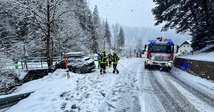 Dichter Schneefall und rutschige Fahrbahnen sorgten heute Nachmittag für einen technischen Einsatz auf der L551 Richtung Vorderstoder. Ein Kleinfahrzeug war von der Straße abgekommen und musste von uns geborgen werden.