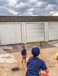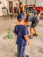 Darüber hinaus erfuhren die Kinder viel Wissenswertes über die persönliche Schutzausrüstung und konnten selbst ausprobieren, wie schwer die Ausrüstung eines Atemschutzträgers ist. Mit viel Begeisterung probierten sie außerdem Funkgeräte und erkundeten die Gerätehäuser.
