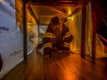 Für Action sorgten die Geschicklichkeitsstationen: Mit der Kübelspritze hieß es Zielgenauigkeit beweisen, und beim Hebespiel mit dem hydraulischen Spreizer konnten Flaschen präzise angehoben werden – eine Übung, die sonst den Einsatzkräften bei technischen Hilfeleistungen vorbehalten ist. Auch ein Kriechgang durch einen verdunkelten Tunnel durfte nicht fehlen und vermittelte spielerisch den Ernstfall bei Brandeinsätzen.