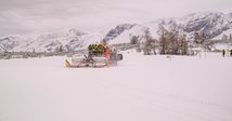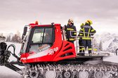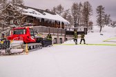 Das Verladen der Ausrüstung auf die Pistenbullys ist Teamarbeit pur. Wir haben Pumpen, Schläuche und Beleuchtung verstaut und uns den Weg durch die weiße Wand nach oben gekämpft. Bei einer Sicht von nur wenigen Metern und Temperaturen um die minus 12 Grad war das schon die erste Bewährungsprobe für Mensch und Maschine.